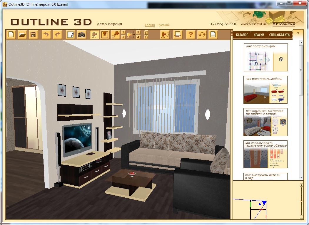 Outline3D – это удобная и предельно простая программа для расстановки мебели и создания виртуального интерьера, которая будет полезна как владельцам бизнеса, так и продавцам. |